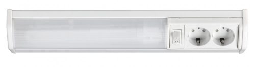 színű műanyag búrával. Kapcsolós, egyszerűen kezelhetősé, 2 darab beépített hálózati csatlakozó aljzattal. Az IP20-as védettségű lámpa G23-as